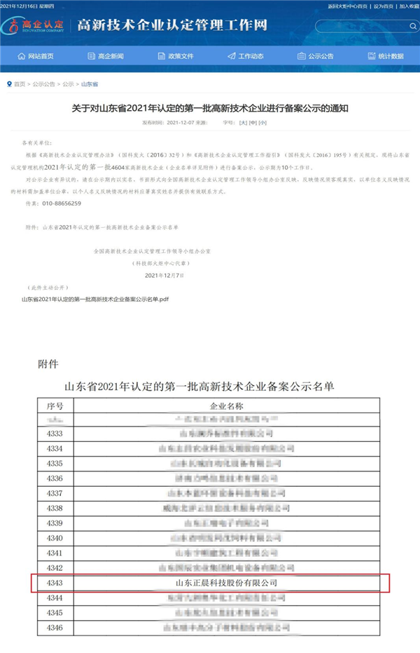 高新技术企业认定传来捷报!近日,全国高新技术企业认定管理工作领导小组办公室公布了山东省2021年第一批高新技术企业名单。完美网榜上有名。
