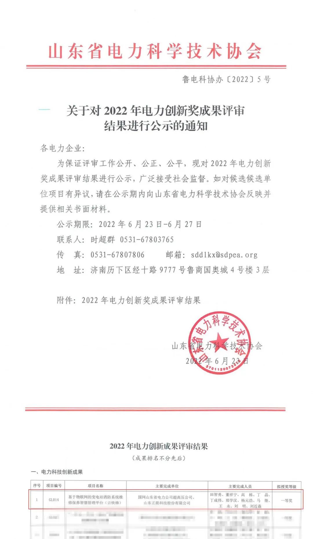 近日,完美网与国网山东省电力公司超高压公司联合研发的《基于物联网的变电站消防系统维修保养智慧管理平台(云快修)》通过了山东省电力科学技术协会评审,荣获2022年电力科技创新成果一等奖,并获推荐申报中国电力企业联合会2022年度电力创新奖。