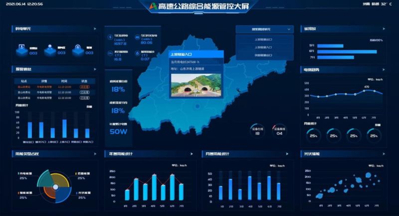 高速公路综合能源解决方案以信息化、智能化、高效化,引领高速公路管理和运营服务水平提升,积极推进云计算、大数据等现代信息技术与高速公路管理、运营服务的深度融合,全面深化高速公路信息数据的共享和开发利用,建立健全完善的监测感知体系、可靠的通信保障体系、实时的预报预警体系,促进高速公路机电设施安全、绿色和可持续发展开展。