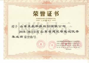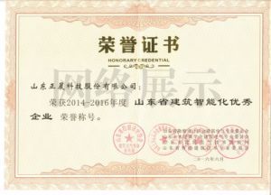 山东省智能建筑优秀企业证书